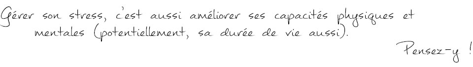 La question que je vous invite à vous poser est : ce stress est-il moteur et sain pour moi ? Est-il au contraire épuisant, déprimant ? Entraîne-t-il des symptômes handicapants : acné, psoriasis, eczéma, problème de digestion, mal de dos... ?